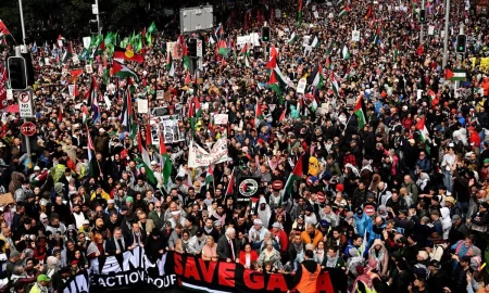 Unos 300 mil manifestantes propalestinos, entre ellos el fundador de Wikileaks, Julian Assange, marcharon ayer por el icónico puente de la bahía de...