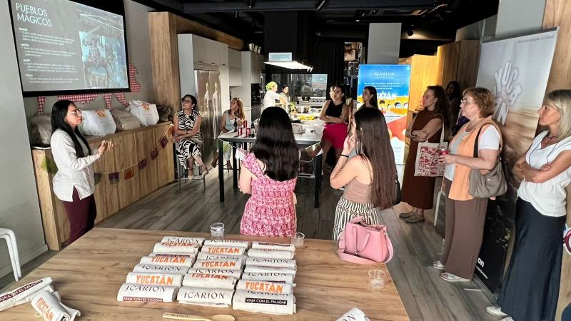 Más de 60 agentes de viajes de Madrid y Zaragoza participaron en sesiones de capacitación gastronómica y turística organizadas por Sefotur, en colaboración con Icárion, en las cuales aprendieron a preparar platillos icónicos de Yucatán.