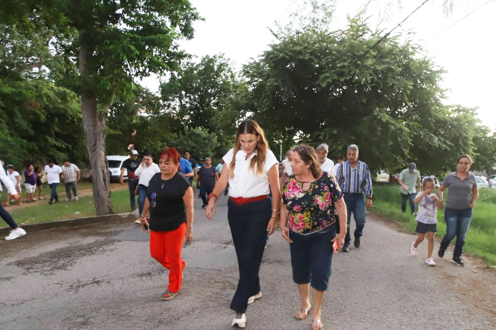 Cecilia recibió reportes de las necesidades más sentidas de los ciudadanos y reiteró su compromiso de trabajo 24/7 para lograr la justicia social mediante servicios públicos de calidad, durante un recorrido por la calle 25 diagonal hasta el parque San Luis Chuburná.